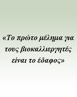 Το πρώτο μέλημα για τους βιοκαλλιεργητές είναι το έδαφος, το οποίο πρέπει να είναι αφράτο, ώστε να κυκλοφορεί ο αέρας, και ικανό να συγκρατεί μεγάλες ποσότητες νερού. Για τον εμπλουτισμό του εδάφους με οργανική ουσία & με τα υπόλοιπα απαιτούμενα θρεπτικά στοιχεία, ακολουθούνται οι εξής διαδικασίες: